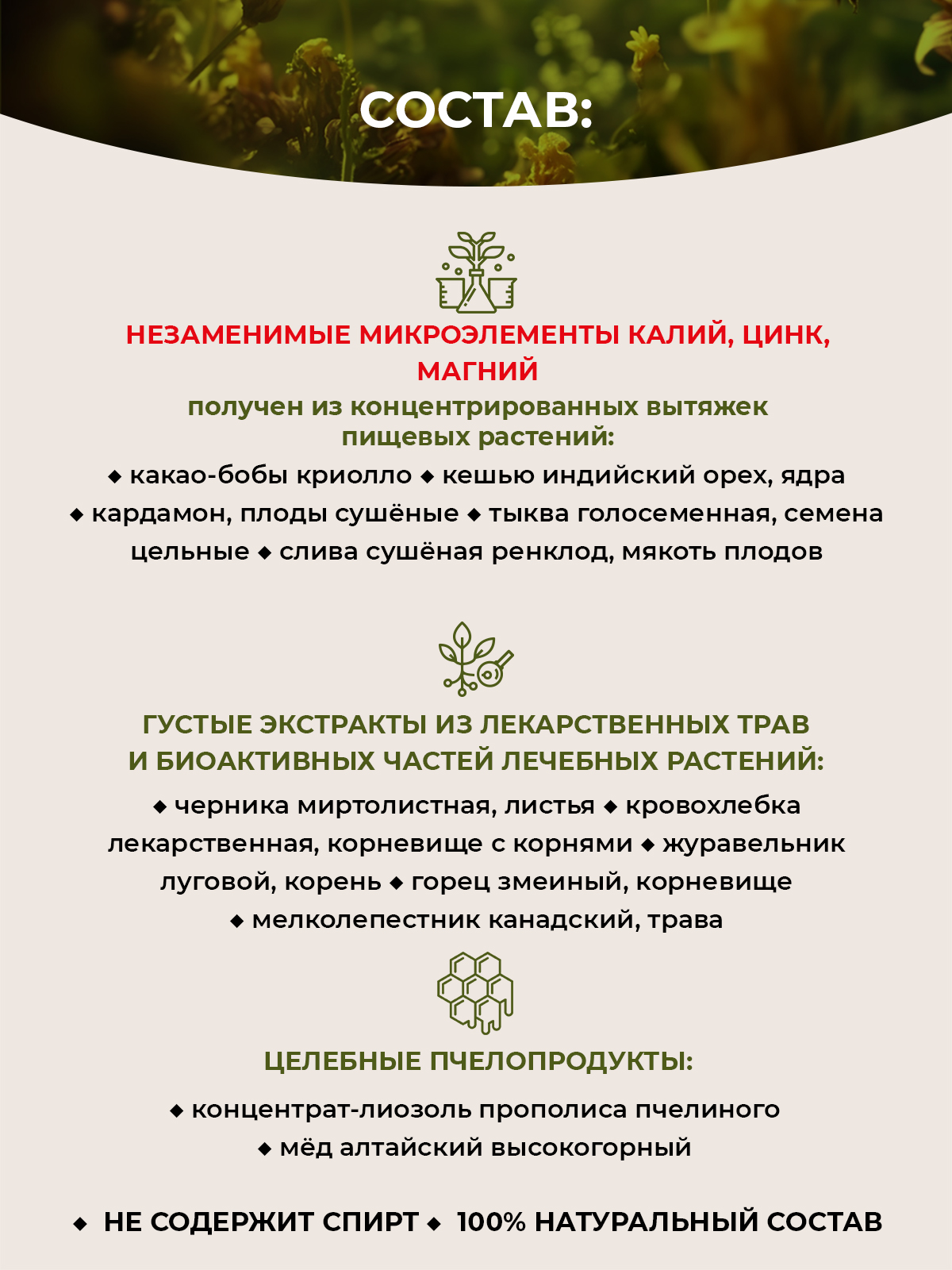 • Концентрат прополиса — уничтожает бактерии и вирусы, защищая слизистую.
