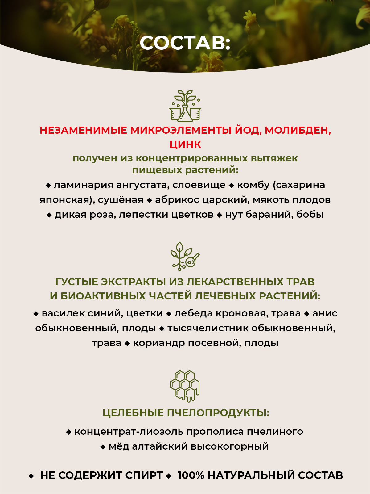 • ⚡ Энергия и бодрость — мёд и йод дарят силы для активной жизни.