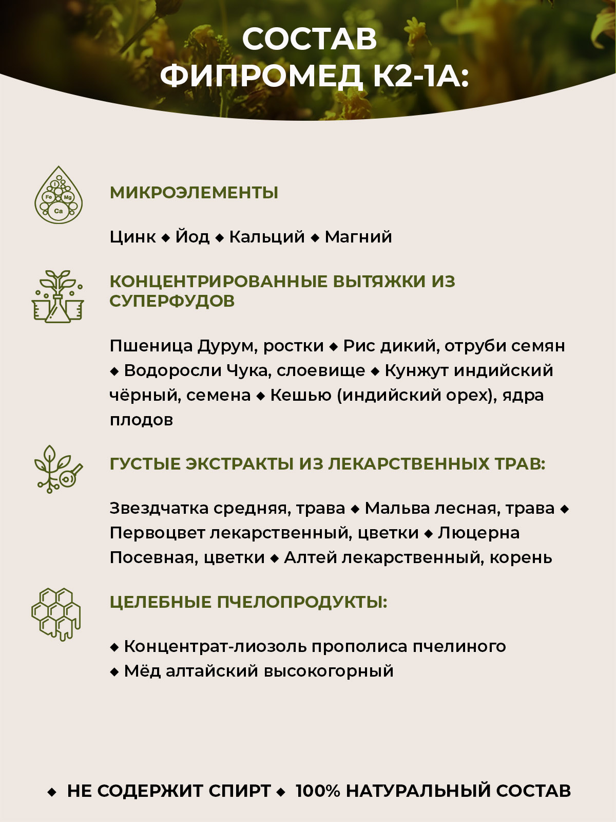 Рецидивы — следствие нерешенных внутренних проблем: накопления токсинов, дисбаланса микрофлоры и хронического стресса. «ФИПРОМЕД КАЛИНЯК К2-1А» — завершающий этап терапии. Он усиливает действие К2-1, очищает организм и предотвращает повторную сухость. Натуральность и эффективность — ваша уверенность в устойчивом результате!