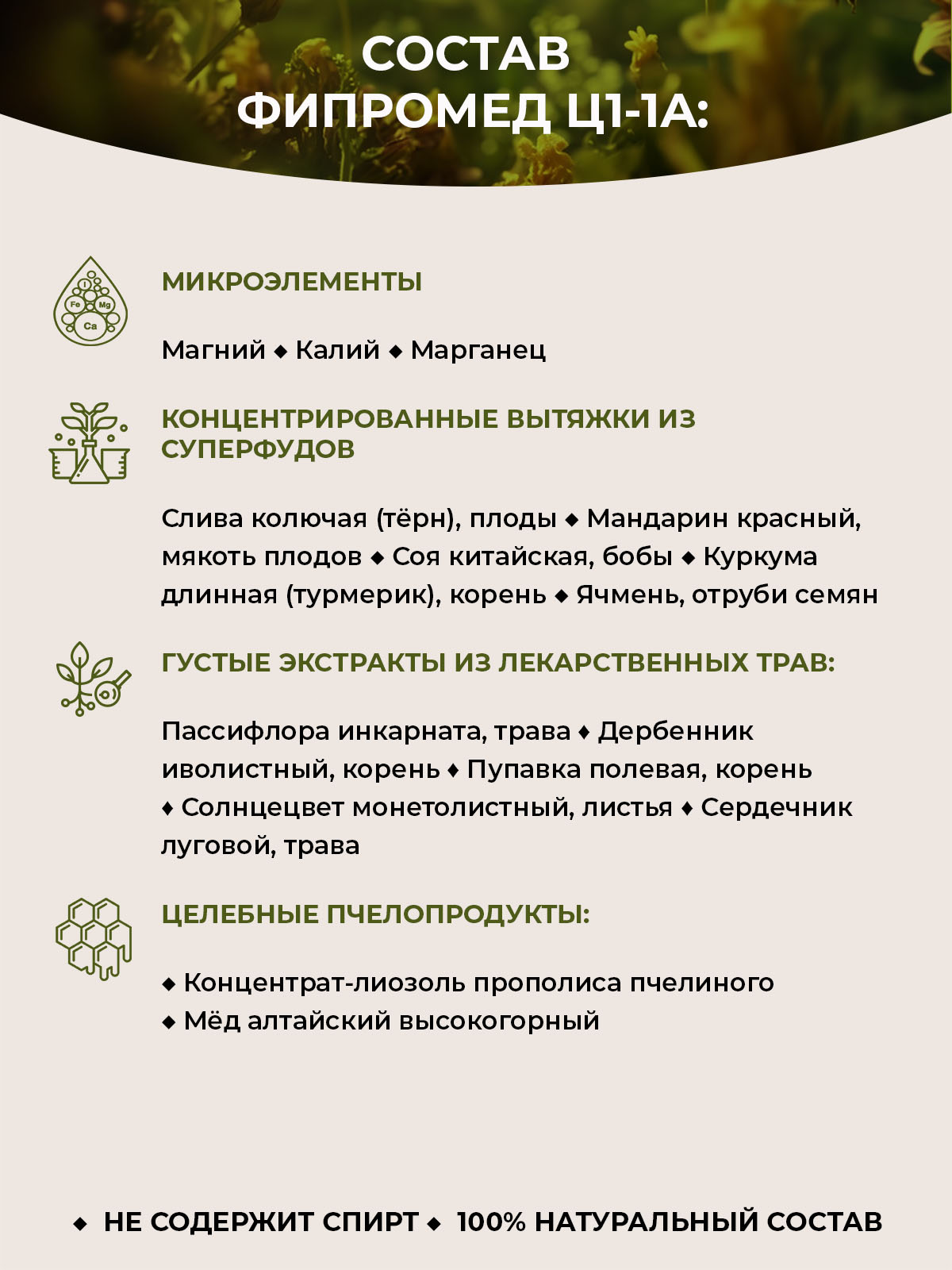 Для обеспечения непрерывного эффекта и предотвращения развития привыкания (толерантности) состав сформирован из компонентов, отличных по своему химическому строению от состава препарата Ц1-1, при сохранении общего однонаправленного действия на ключевые системы организма. Дополнительный акцент формулы сделан на глубокую детоксикацию печени и восстановление ресурсов (иммунитет, трофика тканей), что в долгосрочной перспективе способствует достижению стабильного контроля над течением состояния.