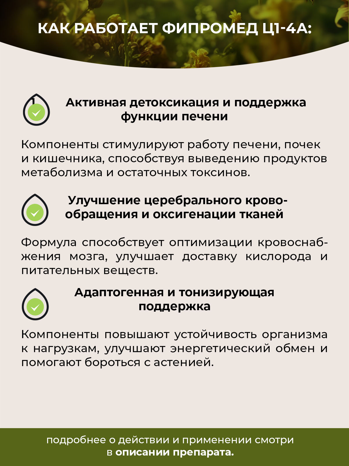 Принимаемый после еды, Ц1-4А дополняет и усиливает действие препарата Ц1-4, обеспечивая организм всем необходимым для строительства новых клеток и восстановления утраченных функций.
