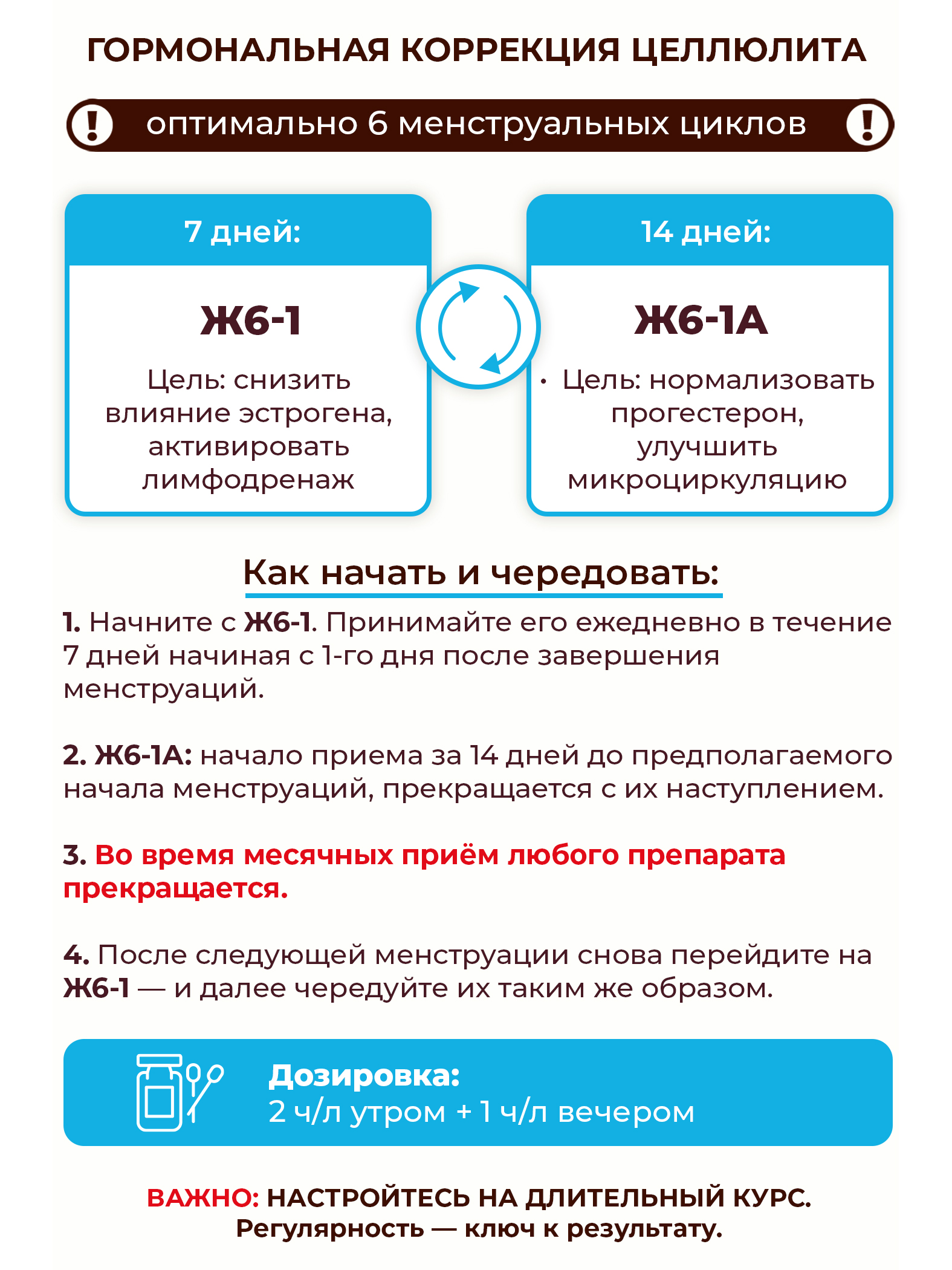 Синергия компонентов препарата Фипромед Ж6-1А не только усиливает их индивидуальные эффекты, но и способствует гармонизации гормонального фона, влияя на уровень эстрогенов, прогестерона и кортизола. Это создает мощный комплекс для нормализации обмена веществ, укрепления соединительной ткани, улучшения состояния кожи и снижения уровня стресса, что, в свою очередь, способствует эффективной борьбе с целлюлитом и улучшению общего состояния кожи.