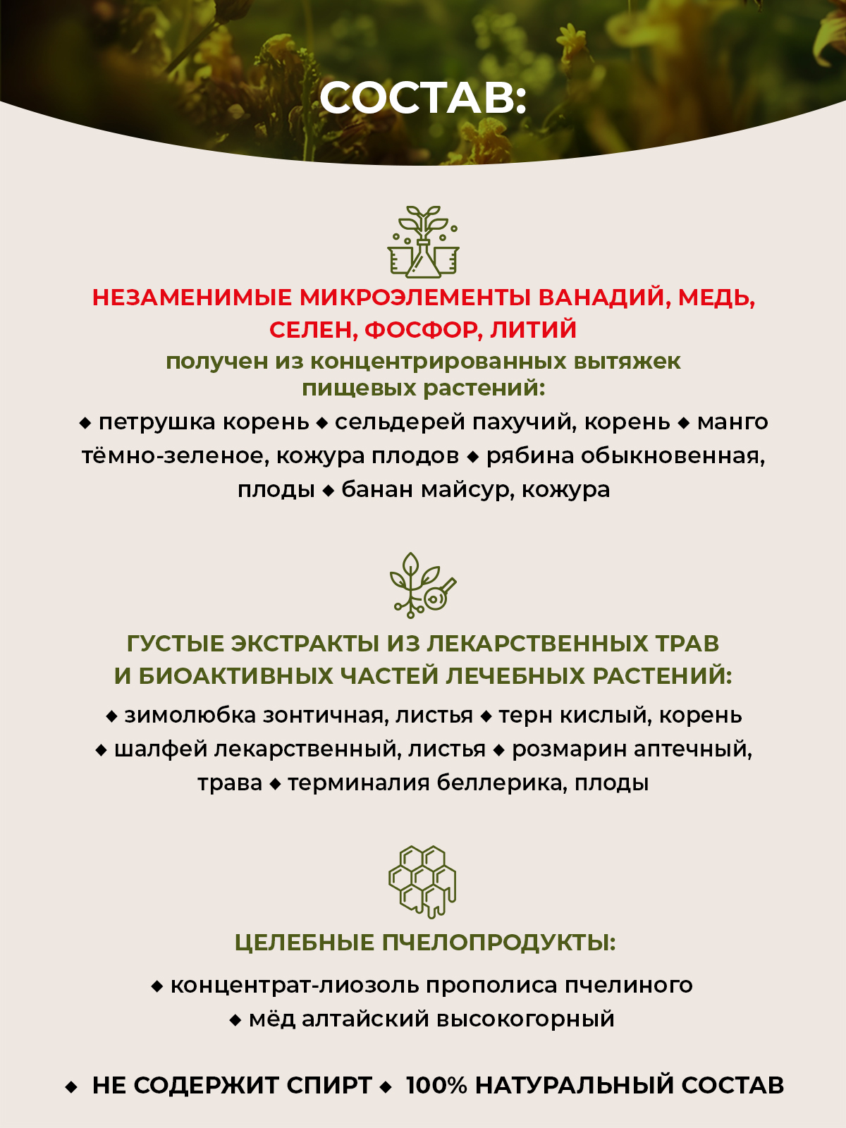 Микроэлементы Ванадий, Медь, Селен, Фосфор и Литий получены из концентрированной вытяжки из растительных пищевых продуктов: